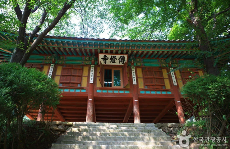 단군 왕검의 세 왕자가 쌓았다는 정족산 삼랑성(사적130호)내에 위치한 전등사는 창건연대는 확실치 않으나 고려 왕실의 원찰로서 진종사(眞宗寺)라 불리워 왔다. 지금의 전등사란 명칭은 고려 충렬왕 8년(1282)에 왕비 정화궁주가 옥등잔을 부처님께 바친 데서 생겨났다고 전해진다.보물 178호인 대웅보전은 정면3칸, 측면2칸의 팔작집으로 광해군 13년(1621)에 지어진 조선 중기 건축물로서는 으뜸이며 특히 내부의 불단위에 꾸며진 닫집의 화려정치(華麗精緻)한 아름다움은 건축공예의 극치를 이루고 있다. (자료출처 : 대한민국 구석구석 - korean.visitkorea.or.kr)
